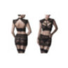 Ensemble érotique en dentelle élastique transparente avec un motif floral, composé d'un soutien-gorge avec lanières décoratives, d'une jupe transparente et un string assorti. Matériel: 92% Polyamid, 8% Elasthan Taille S