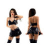 Ensemble wetlook noir brillant (Haut + Jupe + Culotte) 95% polyester, 5% élasthanne