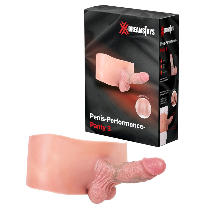 Le gode-panty avec fonction prothèse peut favoriser votre érection, mais offre également une longueur et une épaisseur plus importantes, ce qui peut augmenter le plaisir. La pointe du gode a un rembourrage doux en silicone (longueur : env. 3,50 cm) et un partie creuse pour votre pénis (longueur : env. 10,00 cm, diamètre : env. 2,50 cm). Le slip (Ø de la taille : env. 64,00 cm, Ø des hanches : envi. 82,00 cm, Ø des jambes : env. 44,00 cm) a une excellente élasticité et la taille peut être étirée de 150%. Il n'est pas recommandé aux utilisateurs qui pèsent plus de 100 kg ou qui mesurent plus de 1,90 m d'utiliser ce produit.