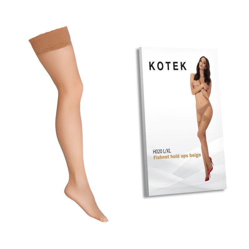 KOTEK Halterlose Strümpfe Fishnet H020 beige L/XL