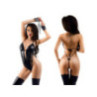 Body effet mouillé noir brillant (body + menottes) 95% polyester, 5% élasthanne
