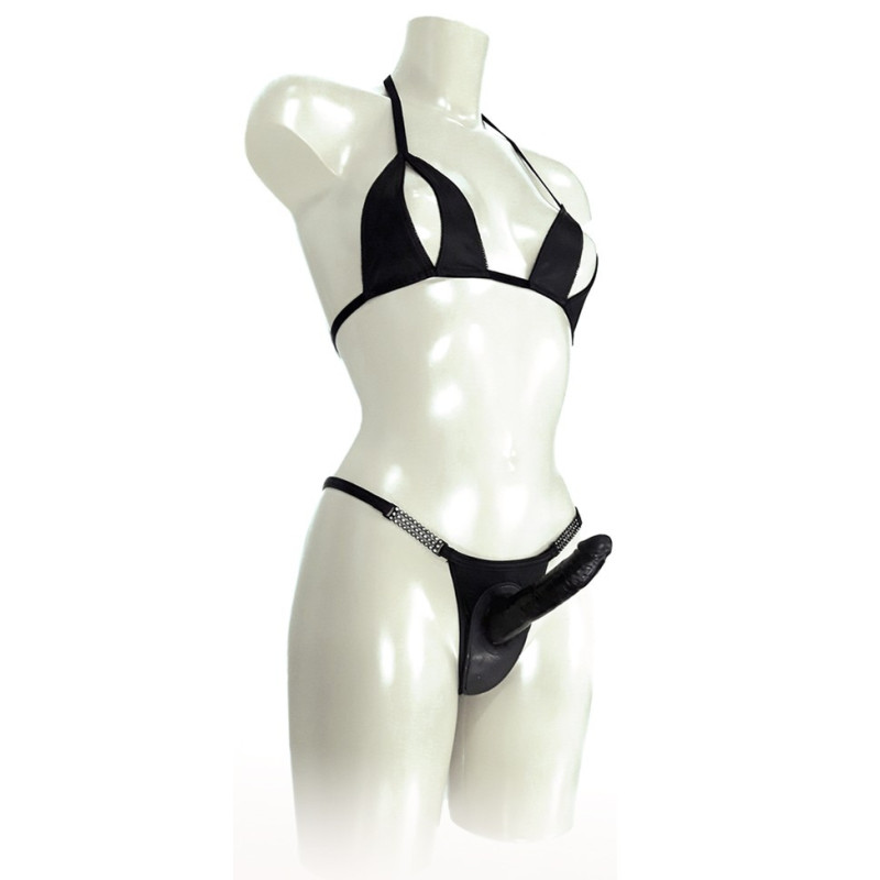 Ensemble soutien gorge ouvert et slip strap-on en wet look . Matière: 100% nylon