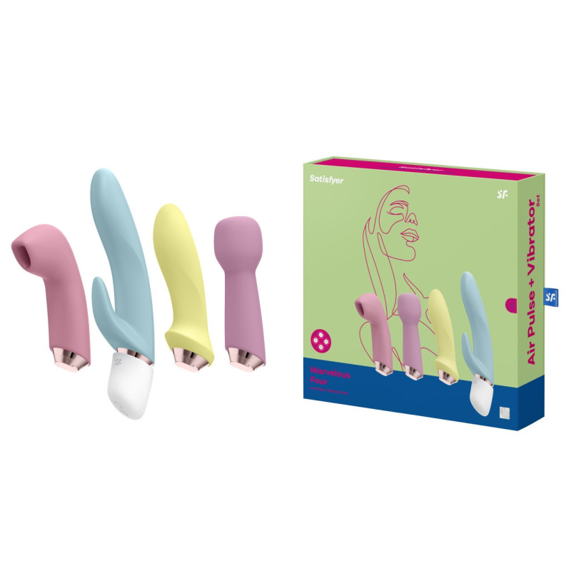 Véritable miracle, cet ensemble vibromasseur multifonctionnel vous offre une collection dont chaque connaisseur peut être fier ! Comprenant un élément de contrôle de base avec 4 têtes facilement interchangeables (accessoires lapin, point G / anal, masseur et stimulateur d'impulsion d'air), le Marvelous Four est prêt à plaire. Basculez simplement entre les pièces jointes avec un clic et tournez à 90 °. Idéal également pour les débutants, le Marvelous Four offre une vraie variété de produits et est donc une belle sélection pour tous ceux qui veulent explorer et découvrir leur plaisir.