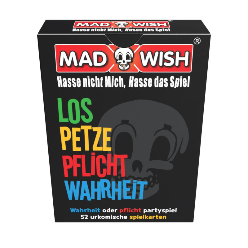 MadWish Playing Cards est une version de poche des jeux MadWish, qui s'articule autour du concept "Action ou Vérité". Chaque carte contient un défi différent pour le joueur, qui peut être une vérité, un défi, une carte "go" (qui comprend un défi pour tout le groupe) ou une moucharde.