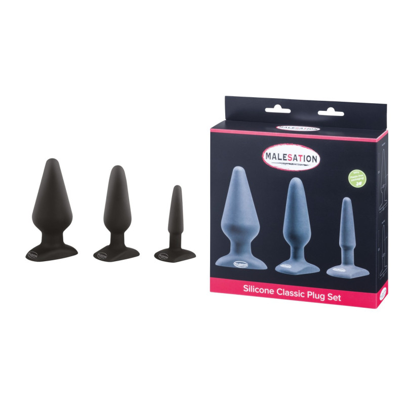 Anal Plug Set comprenant 3 plugs de différentes tailles et une conception ergonomique et très imaginative fabriqué en silicone. Plug L utilisable avec un capsule vibrante (capsule vibrante est non-incluse).