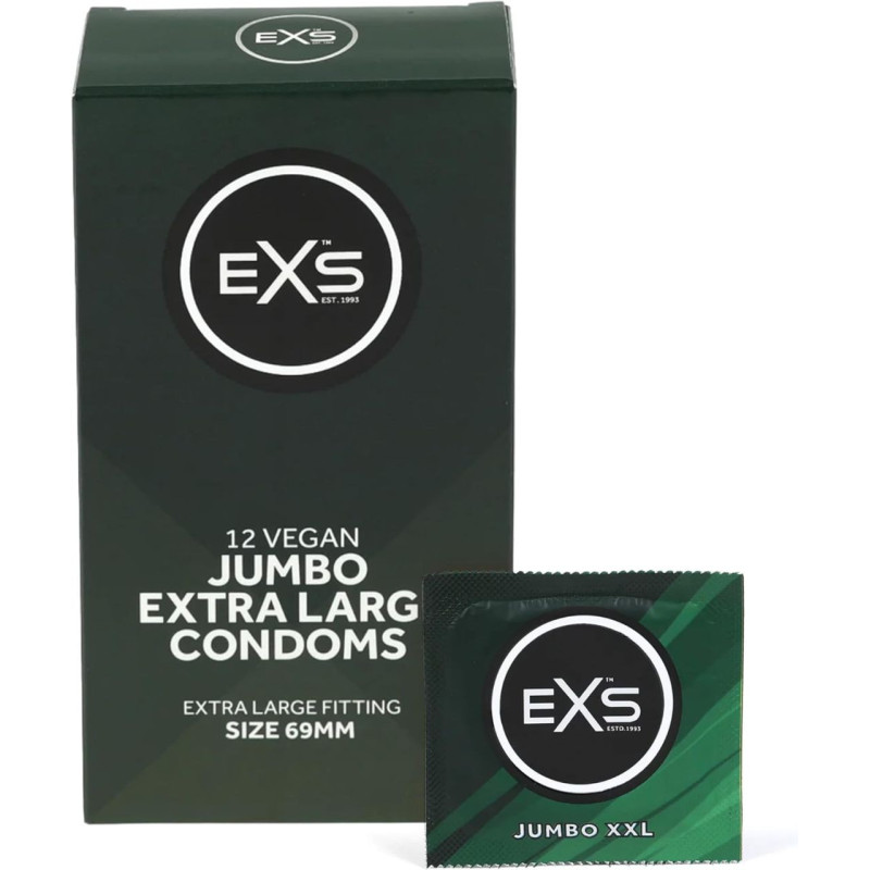 Pour tous ceux qui recherchent la taille la plus grande possible, EXS Jumbo XXL est le choix ultime. Lancé en 2020, ce préservatif a un diamètre nominal généreux de 69 mm, ce qui en fait le plus grand produit de la gamme EXS. Conçu pour les personnes qui ont besoin d'espace supplémentaire pour un confort et une confiance en soi maximaux, EXS Jumbo XXL offre un ajustement sûr et détendu à tous ceux qui trouvent les préservatifs classiques trop serrés.