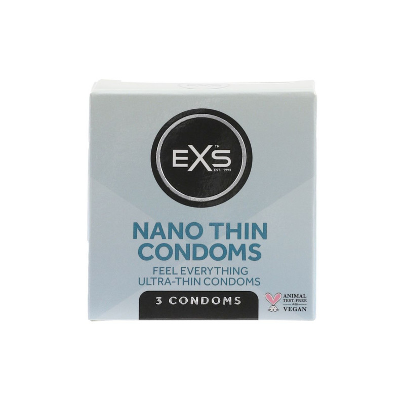 Sa conception cylindrique élancée et sa largeur nominale de 53 mm offrent un ajustement serré mais confortable, garantissant une intimité sans effort et une confiance totale à chaque utilisation. Spécifications du produit : Épaisseur : 0,045-0,05 mm (latex ultra-fin) Largeur nominale : 53 mm Forme cylindrique pour un ajustement élégant 30 % plus fin que les préservatifs standard Lancé en 2016 Disponible en paquets de 3, 12, 48, 100 et 144 pièces Le best-seller à la croissance la plus rapide en 2025 EXS Nano Thin pour les couples qui recherchent une intimité maximale avec une protection fiable