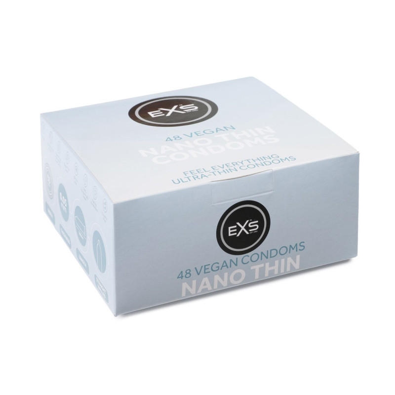 Sa conception cylindrique élancée et sa largeur nominale de 53 mm offrent un ajustement serré mais confortable, garantissant une intimité sans effort et une confiance totale à chaque utilisation. Spécifications du produit : Épaisseur : 0,045-0,05 mm (latex ultra-fin) Largeur nominale : 53 mm Forme cylindrique pour un ajustement élégant 30 % plus fin que les préservatifs standard Lancé en 2016 Disponible en paquets de 3, 12, 48, 100 et 144 pièces Le best-seller à la croissance la plus rapide en 2025 EXS Nano Thin pour les couples qui recherchent une intimité maximale avec une protection fiable