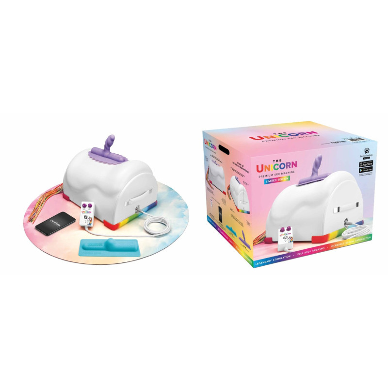 Après avoir galopé à travers un arc-en-ciel magique, notre Cow-girl s'est transformée en une magnifique licorne; nouveauté améliorée, Sexmaschine classique, comprenant 2 accessoires Fantasy ludiques. Profitez de vous equiper avec une stimulation pénétrante ou non . Branchez l'alimentation avec une télécommande filaire LED et ajoutez de la couleur à votre chevauchée sauvage avec un NOUVEAU fouet arc-en-ciel détachable. Mise à jour éléctronique Parmis les nouveautés, pour un contrôle total sans fil et une utilisation avec application pour smartphone. Cette édition Premium comprend également un tapis de sol facile à nettoyer et résistant aux liquides, qui absorbe les vibrations, amortit le bruit et offre une surface confortable pour vos jeux.