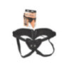 Harnais noir réglable ( 100% polyester ) capitonné de velours avec 2 anneaux et une petite poche pour y placer un vibromasseur. Vibromasseur non inclus.