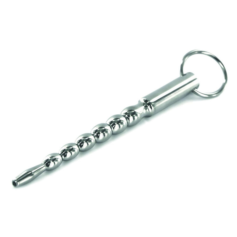 Le bâton a 6 boules allant du plus petit au plus grand. L'extrémité avec laquelle tu insères le bâton a un diamètre de 8 mm et la partie la plus large est de 12 mm. La tige mesure 140 mm de long et la partie insérable a une longueur de 102 mm. Pour la sécurité, un anneau est fixé, ce qui donne en plus un look de piercing excitant.